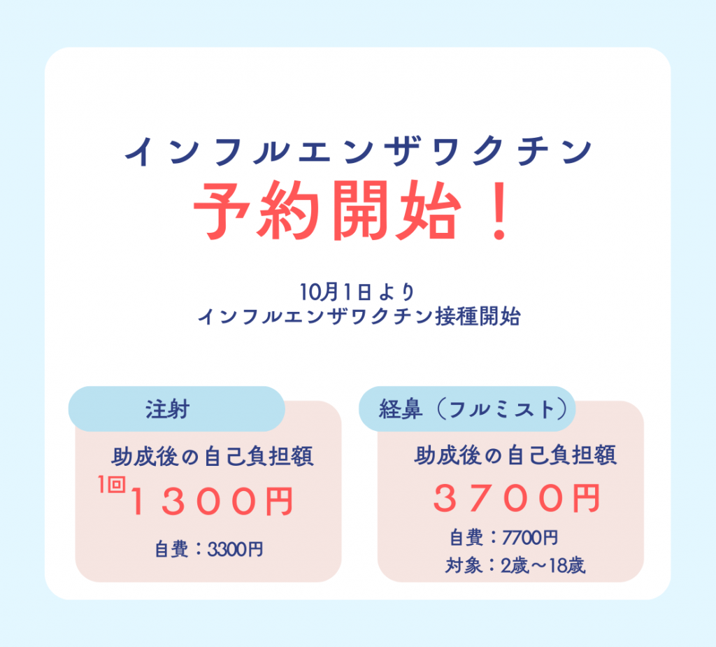 10月1日よりアクアキッズクリニックではインフルエンザワクチンの接種を開始します。