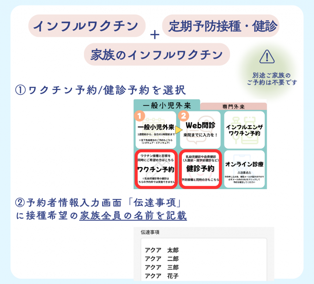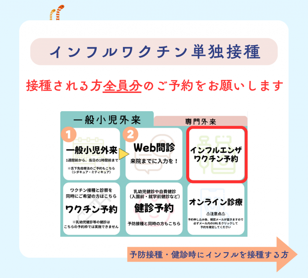 ⚠️ 予防接種/乳幼児健診にてインフルエンザワクチンのみのご予約はできません